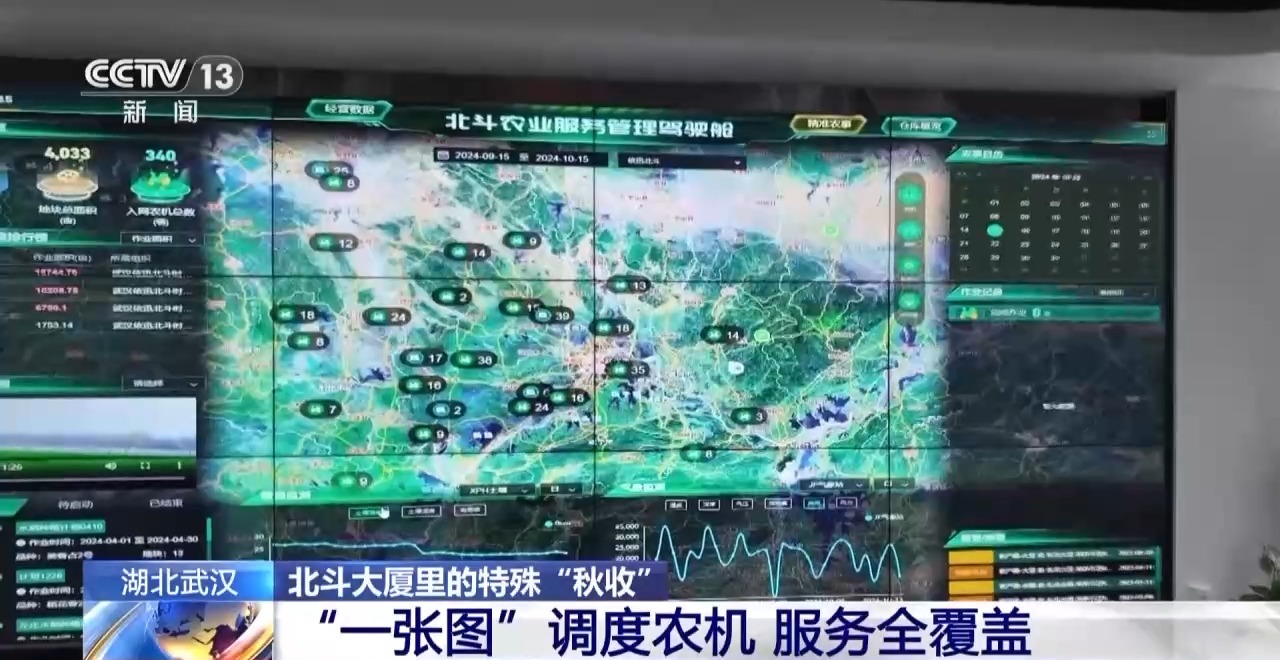 總臺央視記者 蔣樹林:智慧農機之所以能夠高效運轉,都是靠著北斗農業(yè)服務管理駕駛艙。通過湖北農機“一張網”可以實現(xiàn)應急調度,比如說在秋收的關鍵期如果某一個地方遭遇集中的連續(xù)降雨,就可以及時地進行調度,保障秋收秋種順利展開。