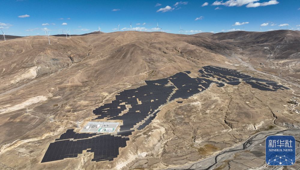 10月17日拍攝的位于西藏日喀則市薩迦縣的中核薩迦300兆瓦風(fēng)光儲一體化電站(無人機(jī)照片)。