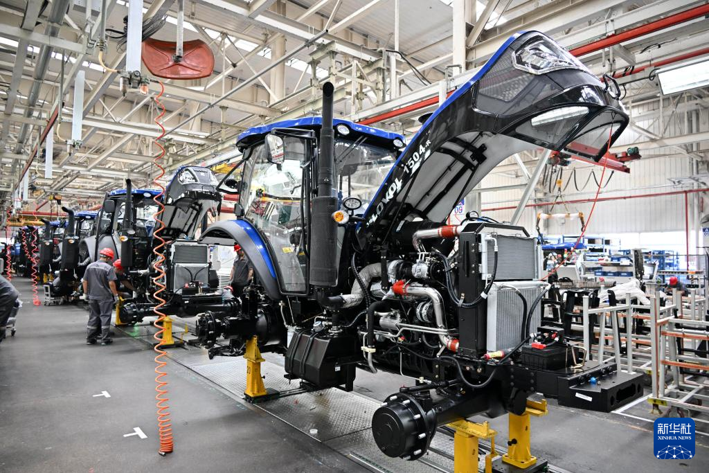 在濰柴雷沃智慧農(nóng)業(yè)科技股份有限公司拖拉機工廠,工人在裝配智能拖拉機(8月21日攝)。新華社記者 李紫恒 攝