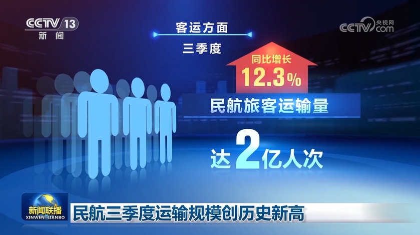 記者從中國民航局了解到,今年三季度民航全行業(yè)共完成運(yùn)輸總周轉(zhuǎn)量403.5億噸公里,同比增長(zhǎng)19.8%??拓涍\(yùn)規(guī)模創(chuàng)歷史新高。