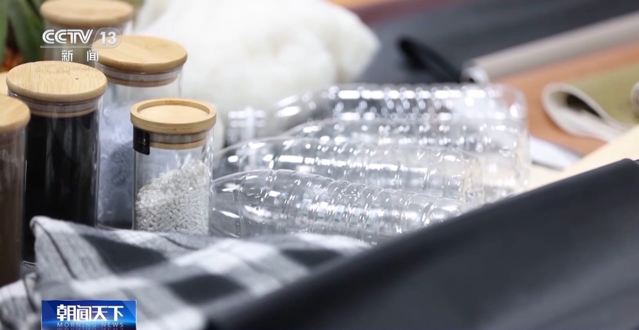 這家參展商,今年生產的可再生環(huán)保材料箱包占比已經達到80%。廢棄的礦泉水瓶只是他們使用的眾多環(huán)保材料中的一種。