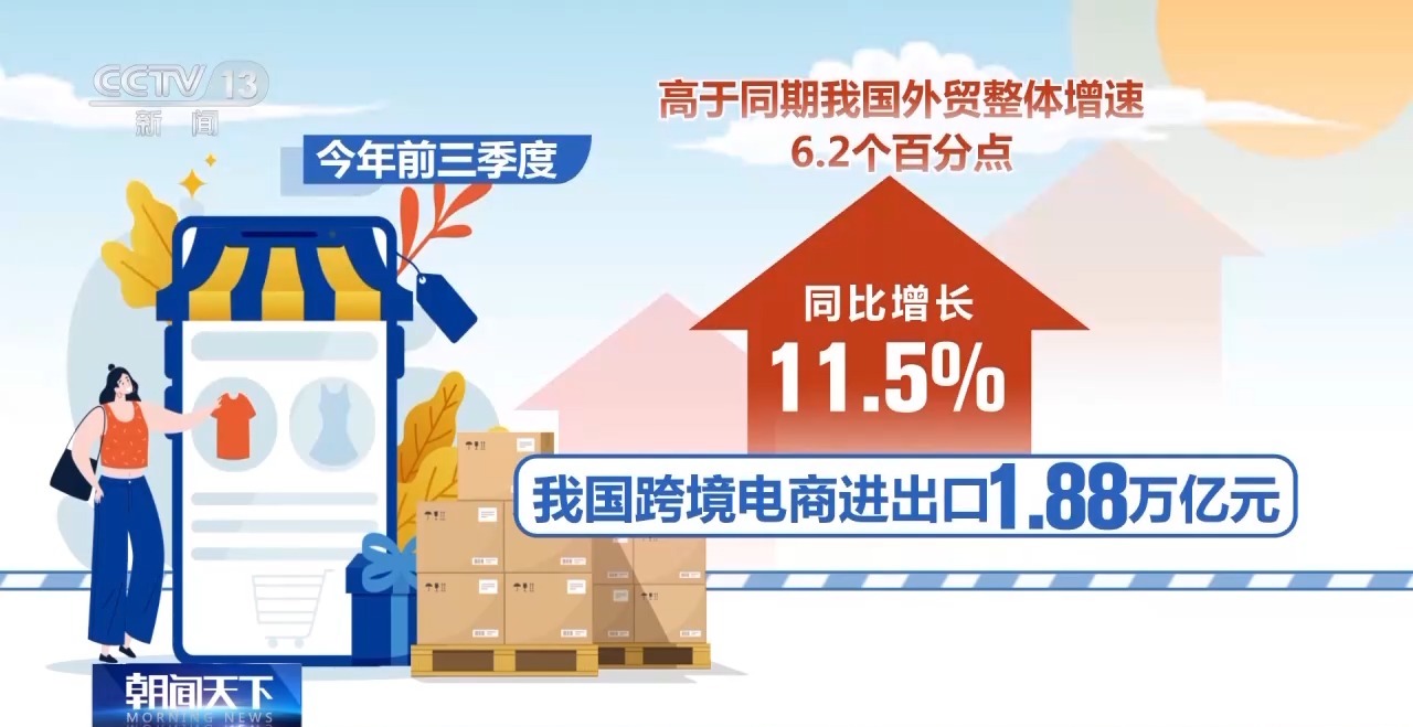 據海關總署最新發(fā)布的數(shù)據顯示,今年前三季度,我國跨境電商進出口1.88萬億元,同比增長11.5%,高于同期我國外貿整體增速6.2個百分點,正成為我國外貿增長新動能。