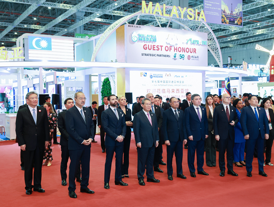 11月5日,國務(wù)院總理李強在上海出席第七屆中國國際進口博覽會暨虹橋國際經(jīng)濟論壇開幕式,并發(fā)表主旨演講。這是開幕式后,李強同與會外國領(lǐng)導人共同巡館。新華社記者 王曄 攝