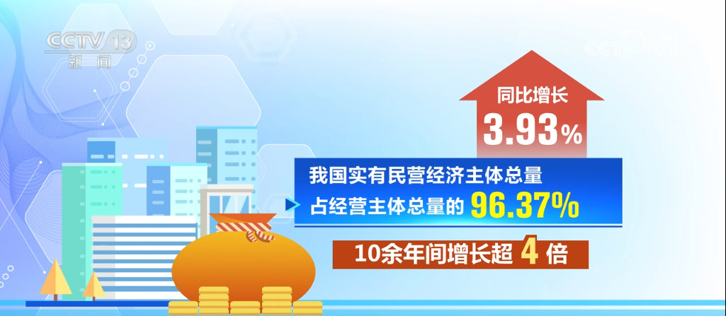 市場監(jiān)管總局公布數(shù)據(jù)顯示,我國實有民營經(jīng)濟主體總量占經(jīng)營主體總量的96.37%,同比增長3.93%,10余年間增長超4倍。其中,民營企業(yè)5554.23萬戶,同比增長6.02%;個體工商戶12532.25萬戶,同比增長3.03%。經(jīng)營主體登記注冊更加便利,民營經(jīng)濟經(jīng)營主體占比進一步提高,市場活力得到充分釋放。