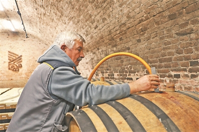 在酒莊的地下酒窖內(nèi),一排排橡木桶有序排放,員工正在檢查環(huán)境溫度和濕度。酒莊首席釀酒師王俐介紹,弗魯什卡山產(chǎn)出的葡萄酒口感很接近中國消費者的喜好。酒莊特意選擇了梅洛等葡萄品種,并采用獨特加工工藝,使葡萄酒的風(fēng)味更加柔和細膩。她拿出一款“奎特梅洛”紅葡萄酒介紹:“這是專門針對中國市場推出的產(chǎn)品,會在橡木桶中存放18個月。這款產(chǎn)品是酒莊在中國市場的暢銷款?!?/p>