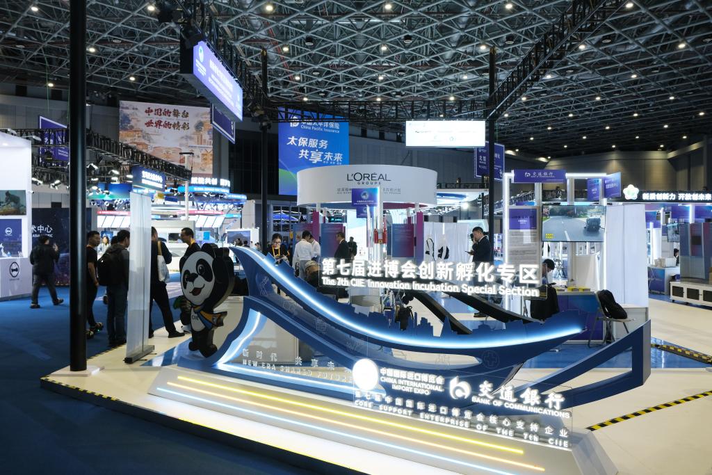 這是11月5日拍攝的第七屆進(jìn)博會創(chuàng)新孵化專區(qū)現(xiàn)場。新華社發(fā)(周心怡攝)