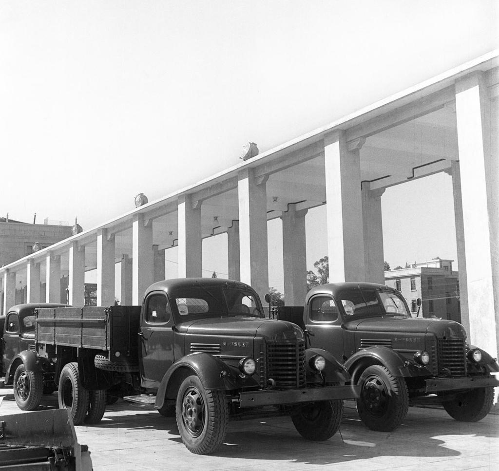 1957年,首屆廣交會(huì)上展出的解放牌汽車。新華社發(fā)