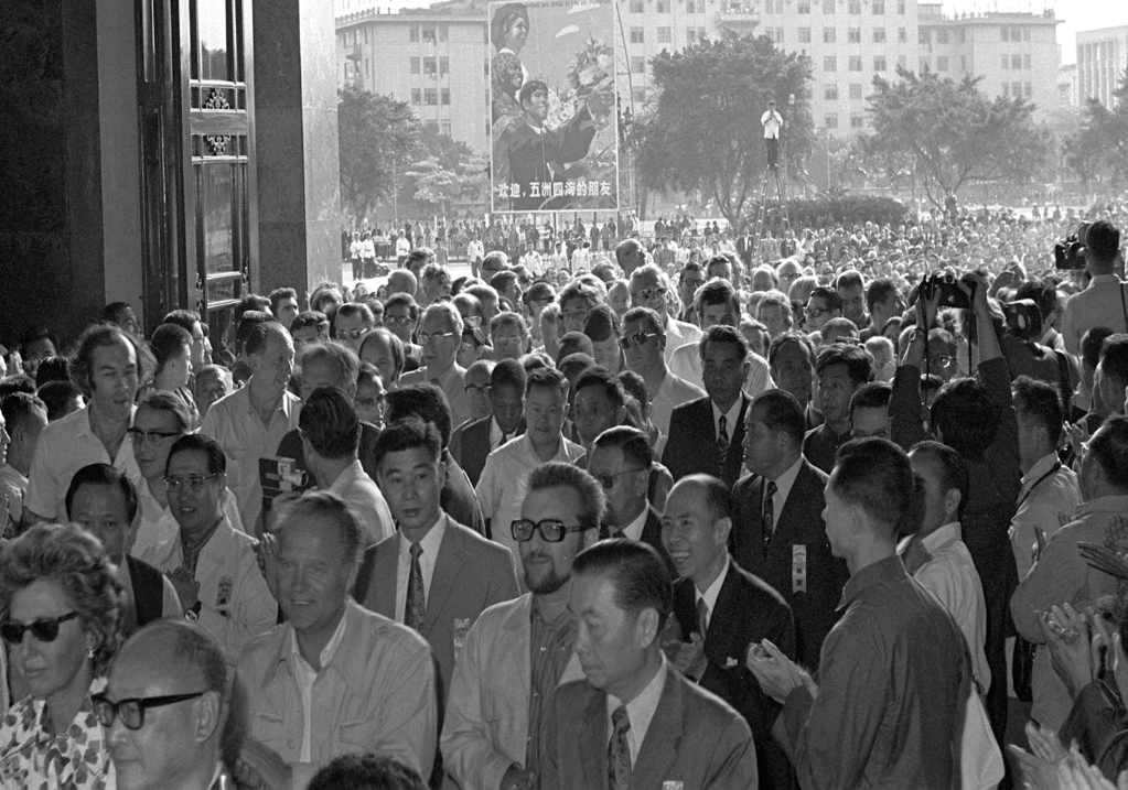 1973年,第34屆廣交會(huì)開幕時(shí),人們踴躍進(jìn)入交易會(huì)大廳。新華社記者 張家昌 攝