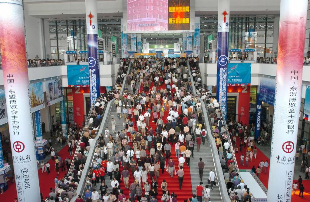 2004年11月6日,在廣西南寧舉行的首屆中國-東盟博覽會(huì)展廳內(nèi)觀者如潮。新華社記者 劉廣銘 攝