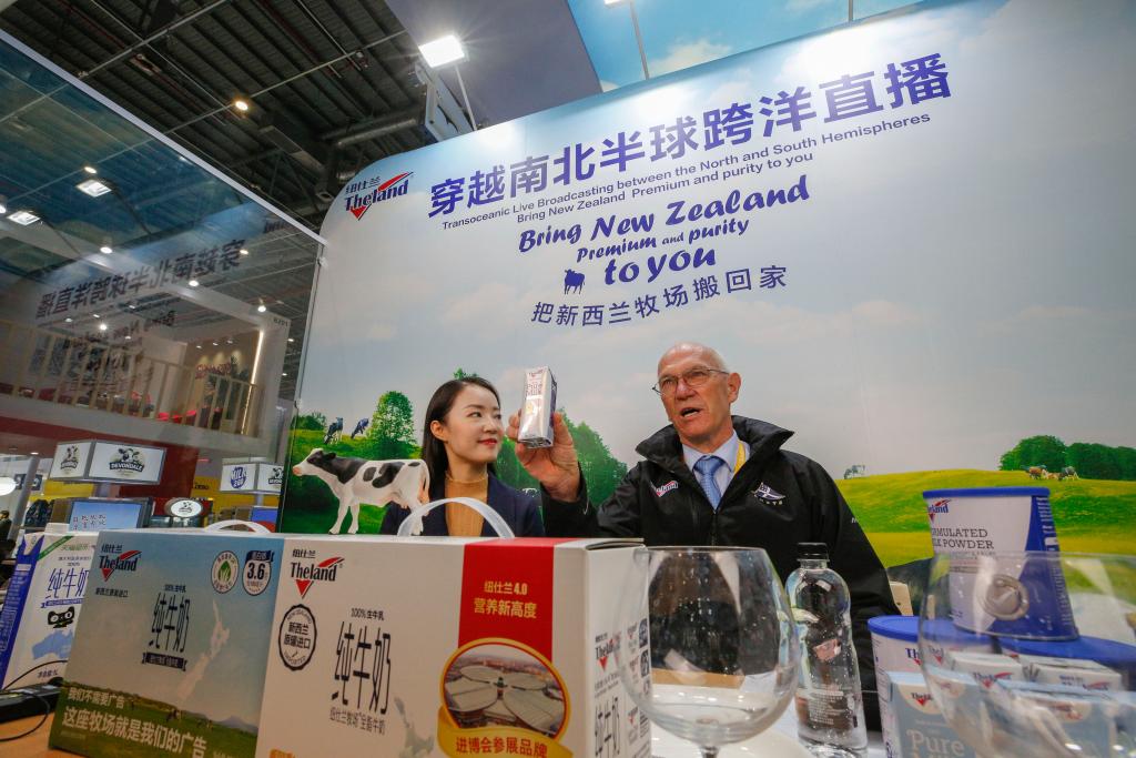 2020年11月7日,新西蘭紐仕蘭乳業(yè)全球研發(fā)總經(jīng)理羅伊在第三屆進(jìn)博會(huì)上直播帶貨。新華社記者 張玉薇 攝