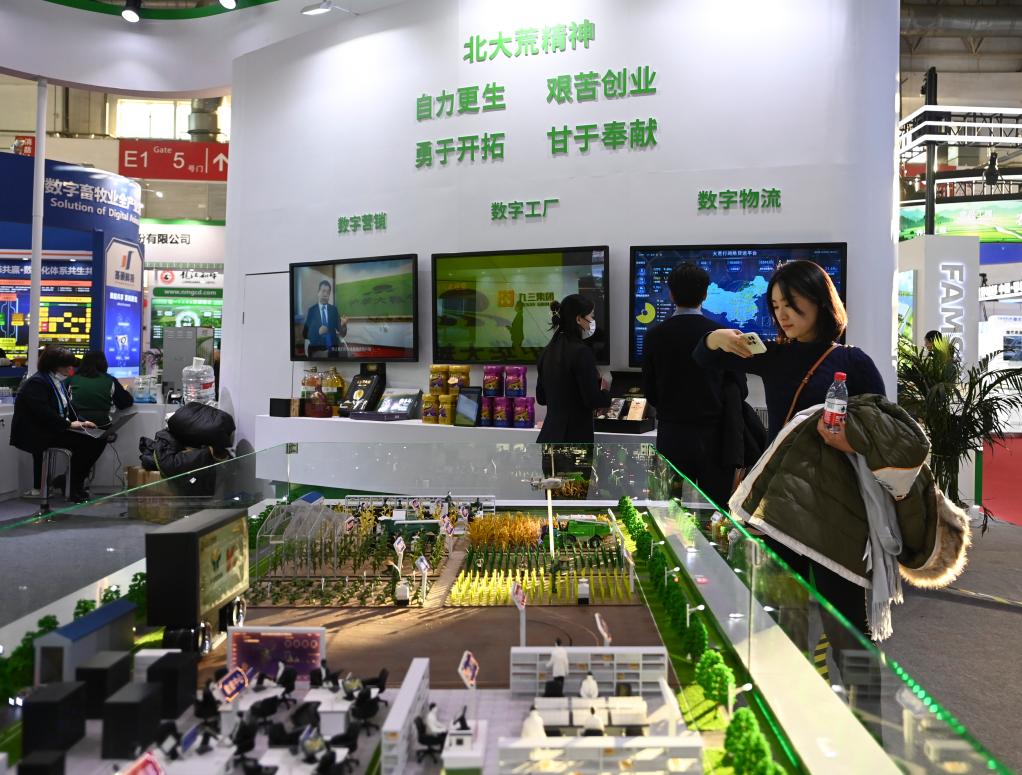 2023年11月30日,參觀者在首屆中國國際供應(yīng)鏈促進(jìn)博覽會(huì)(簡稱“鏈博會(huì)”)綠色農(nóng)業(yè)鏈展區(qū)北大荒集團(tuán)展臺(tái)前觀看智慧育種解決方案。新華社記者 蔡湘鑫 攝