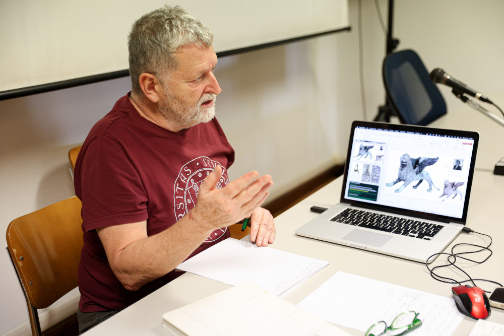11月5日,意大利帕多瓦大學文化遺產(chǎn)學院教授馬西莫·維達萊介紹“威尼斯之獅”研究相關(guān)情況。新華社記者李京攝