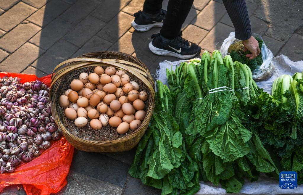 市民在貴陽市大營坡附近選購“惠農(nóng)專線”公交車運(yùn)送來的新鮮農(nóng)產(chǎn)品(11月7日攝)。