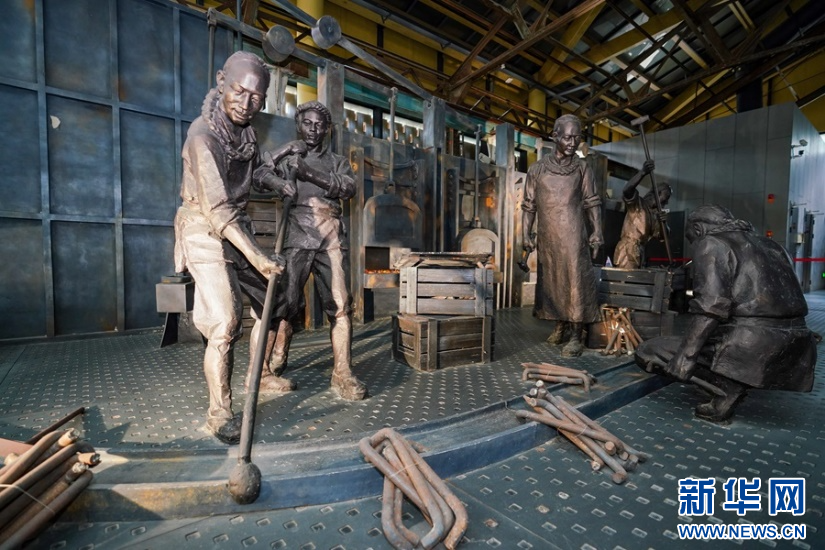 鐵脅廠(chǎng)內(nèi)部展示舊時(shí)工作場(chǎng)景。 新華網(wǎng) 肖和勇 攝