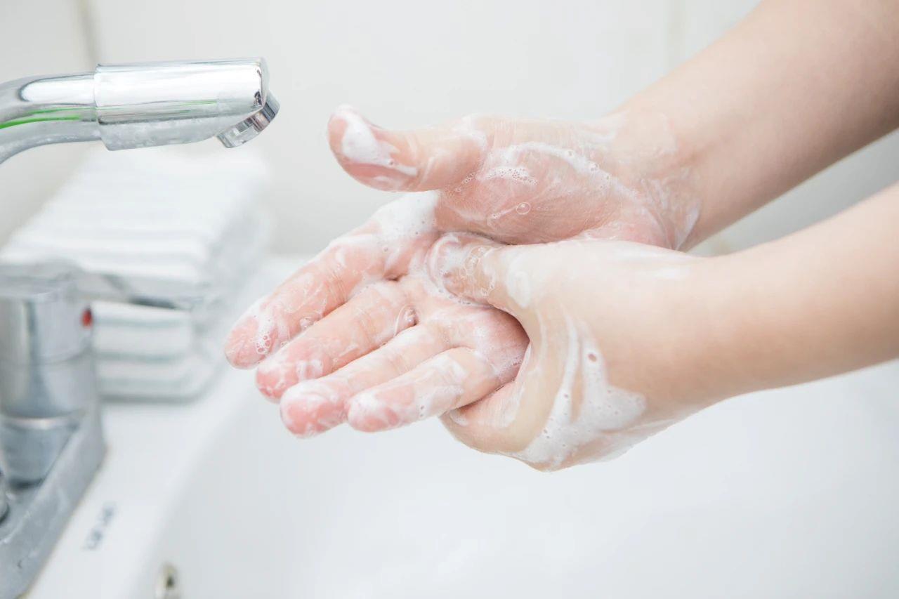 外出回家后,及時進行手衛(wèi)生(洗手或手消毒)。手部有肉眼可見污物時,用洗手液/皂液在流動水下洗手,無可見污物時,可用手消毒劑揉搓雙手。