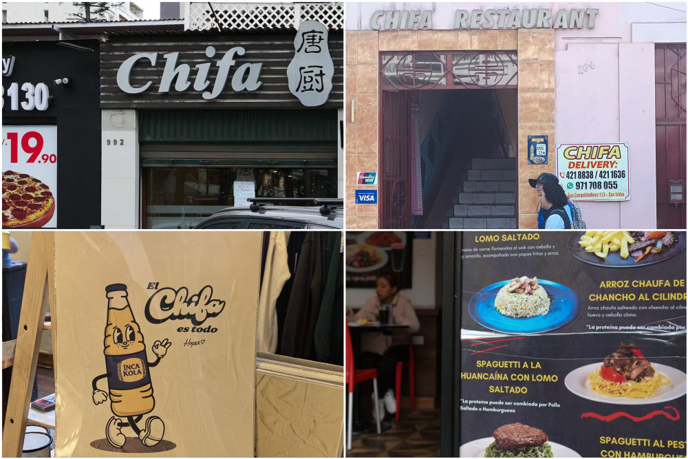 綿延不斷的人文交流,讓秘魯?shù)娘嬍硯狭嗣黠@的中餐印記:中餐館在秘魯被稱(chēng)作“Chifa”(吃飯)(左上、右上)。炒飯(Chaufa)作為常規(guī)食物,登上了大多數(shù)當(dāng)?shù)夭宛^的菜單(右下)。Chifa一詞,還被利馬的年輕畫(huà)家化用為文化符號(hào),與本土飲料“印加可樂(lè)”一起融入到藝術(shù)創(chuàng)作中(左下)。