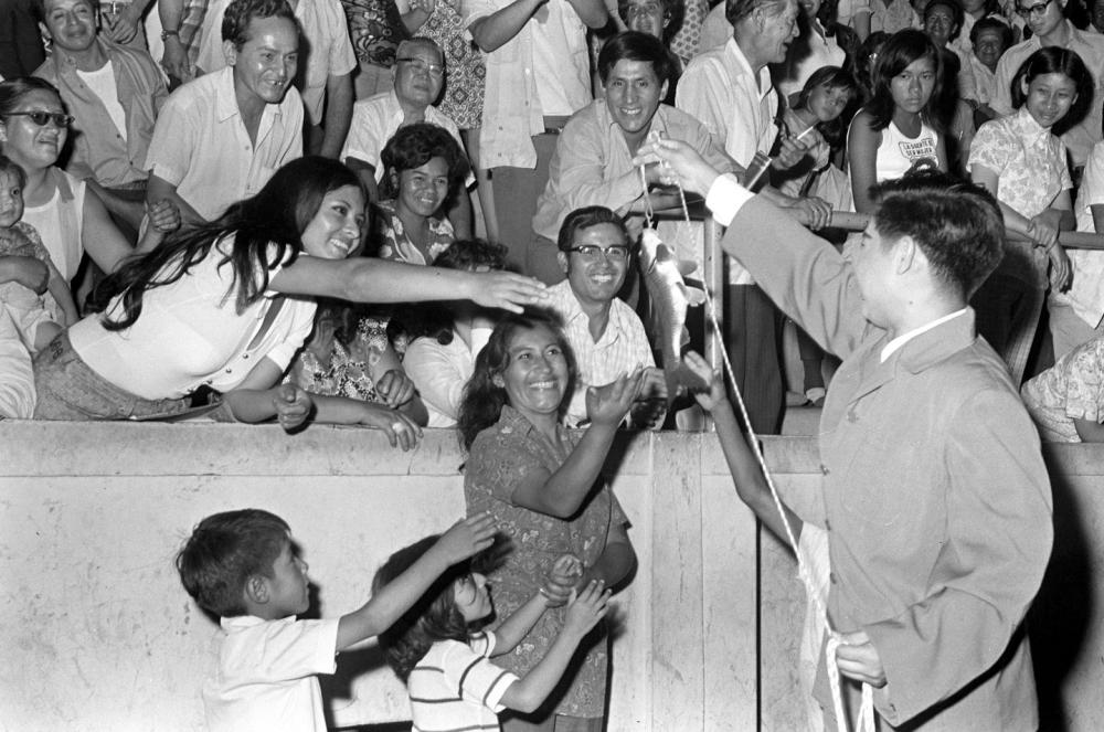 1973年2月,沈陽(yáng)雜技團(tuán)赴秘魯進(jìn)行友好訪(fǎng)問(wèn)演出。這是演員劉忠表演魔術(shù)《釣魚(yú)》,受到秘魯觀(guān)眾的熱烈歡迎。