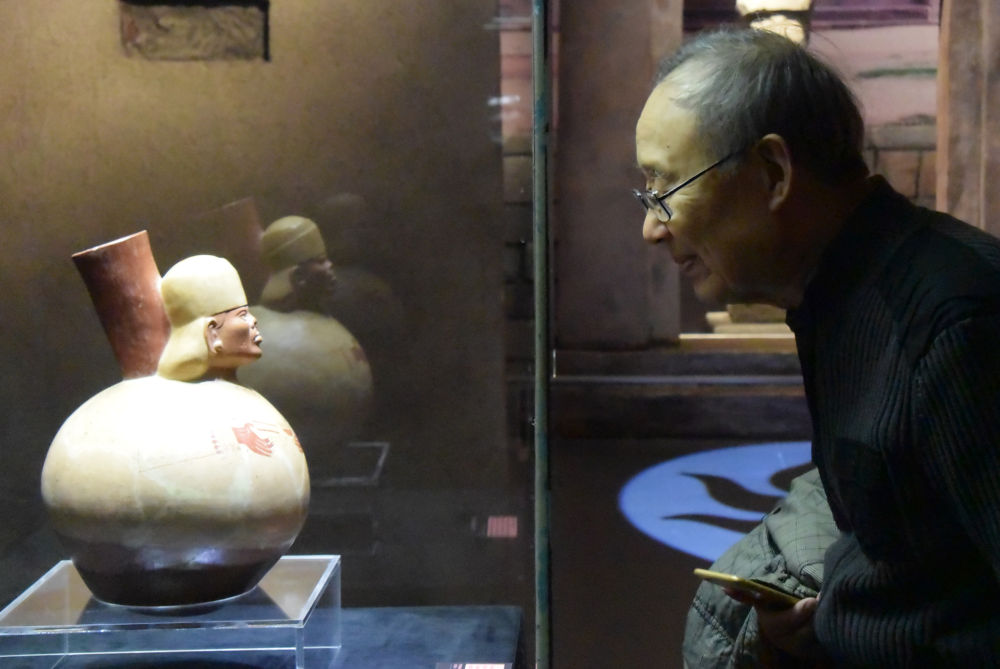 2020年1月17日,“安第斯文明特展——探尋神秘而又令人向往的印加帝國(guó)”在天津博物館開(kāi)展。這是參觀(guān)者觀(guān)看來(lái)自秘魯?shù)恼蛊贰?/p>