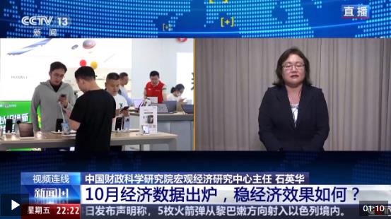 中國財(cái)政科學(xué)研究院宏觀經(jīng)濟(jì)研究中心主任 石英華:10月份的數(shù)據(jù)能夠看到我國經(jīng)濟(jì)運(yùn)行的主要指標(biāo)都在邊際改善。這表明我國經(jīng)濟(jì)運(yùn)行平穩(wěn),而且在進(jìn)一步向好的方向發(fā)展。