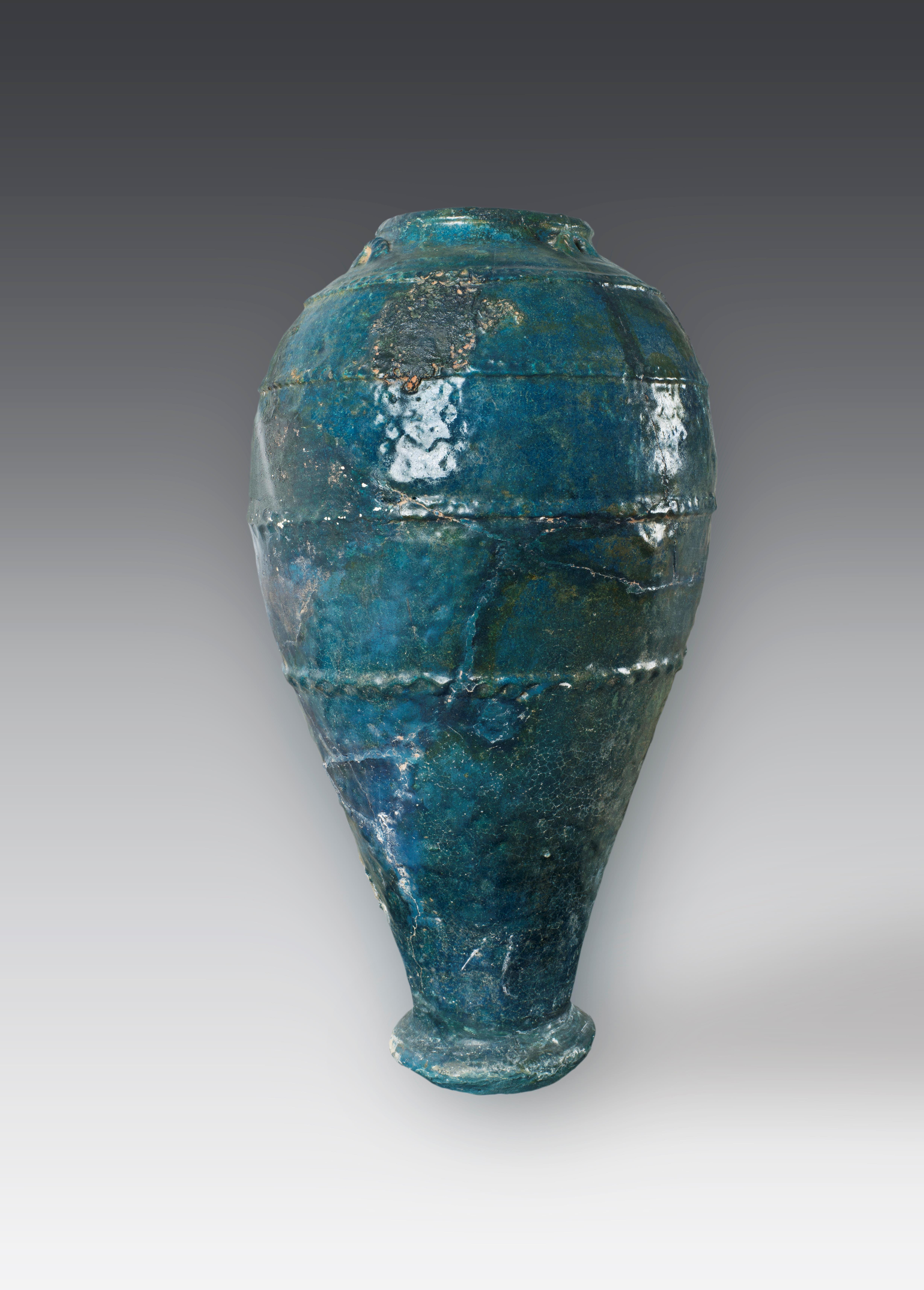 如這件來自古代波斯的孔雀藍釉陶瓶
