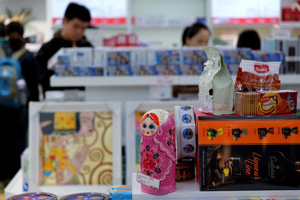 11月17日,旅客在湖北漢口車站中歐班列進(jìn)口商品保稅店選購商品。新華社記者 邢廣利 攝