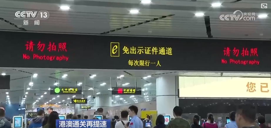 總臺(tái)記者 趙菁:我現(xiàn)在是在拱北口岸的旅客出境大廳的“免出示證件”通道,從今天0時(shí)起,因私經(jīng)常往來(lái)港澳地區(qū)的人員,可走這條“免出示證件”通道通行。