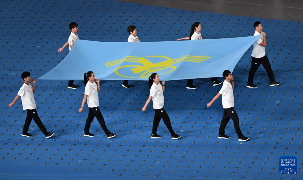 11月22日,中華人民共和國(guó)少數(shù)民族傳統(tǒng)體育運(yùn)動(dòng)會(huì)會(huì)旗在開(kāi)幕式上入場(chǎng)。