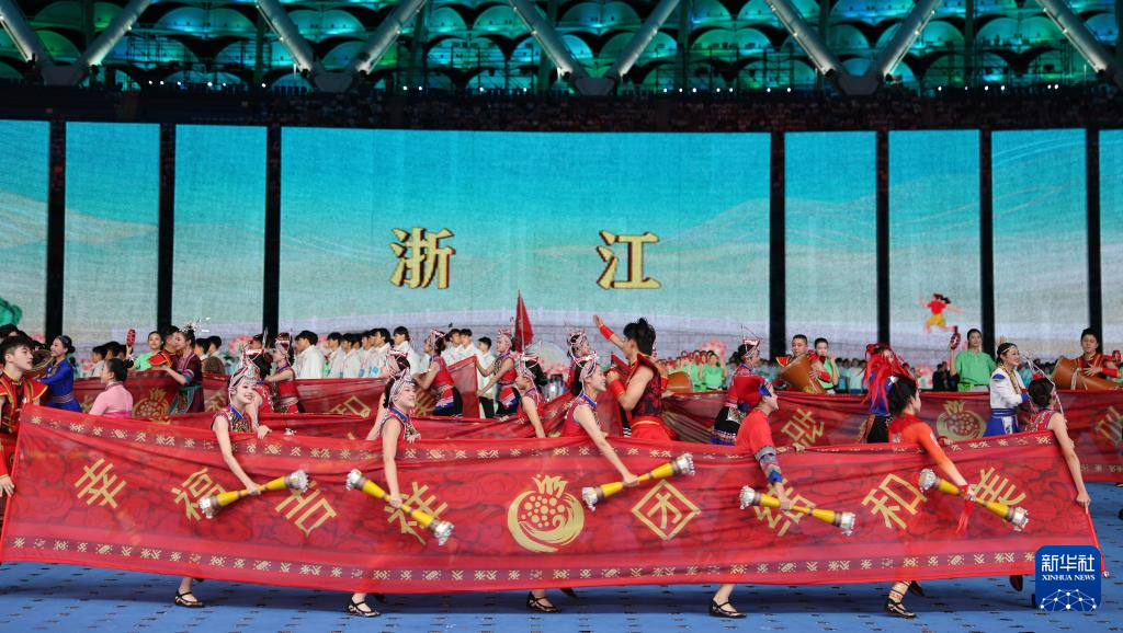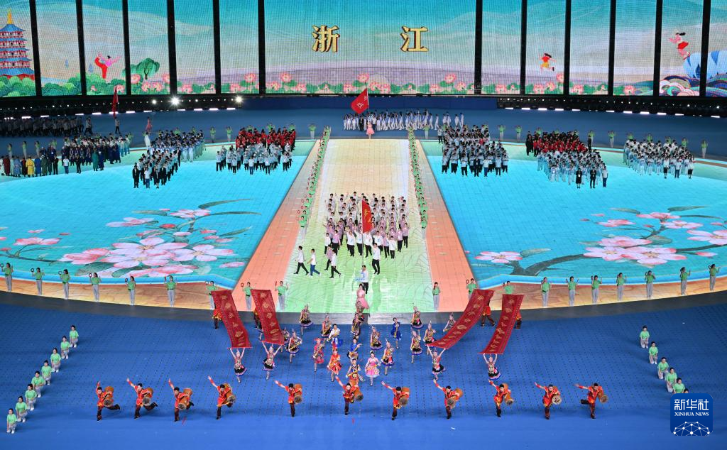 11月22日,浙江省代表團(tuán)在開(kāi)幕式上入場(chǎng)。