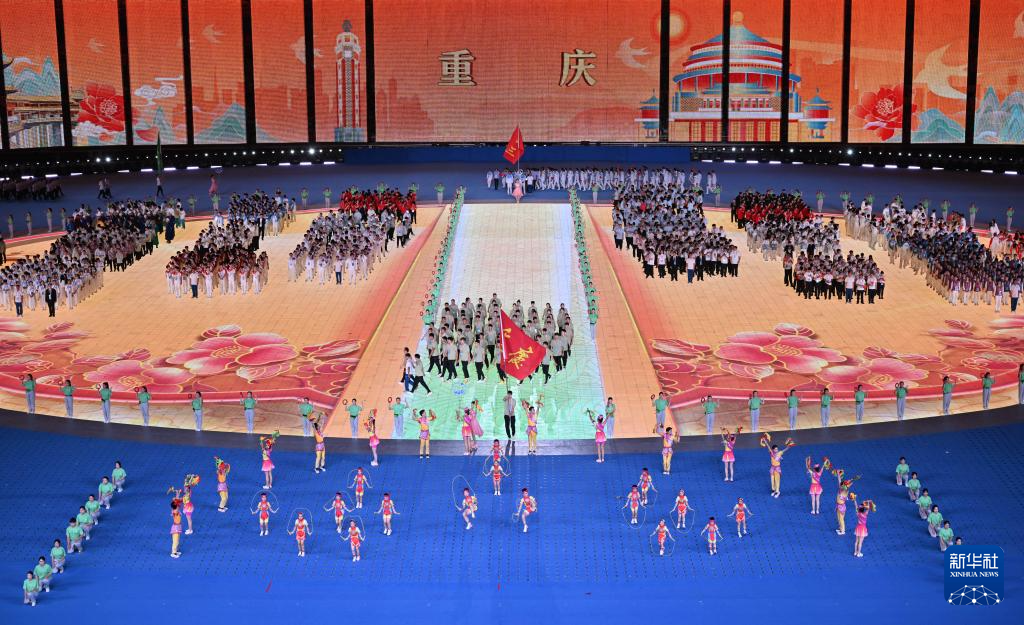 11月22日,重慶市代表團(tuán)在開(kāi)幕式上入場(chǎng)。