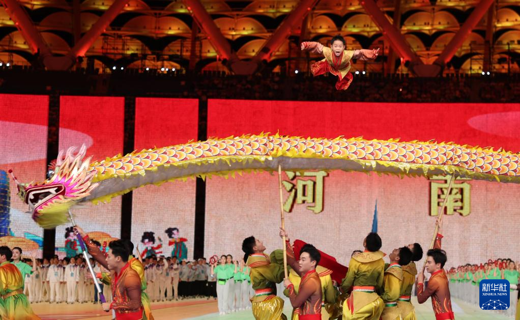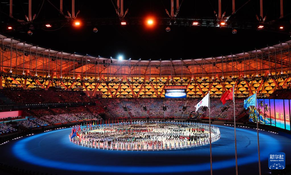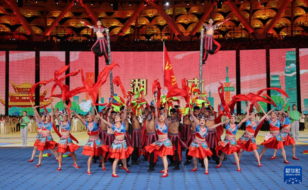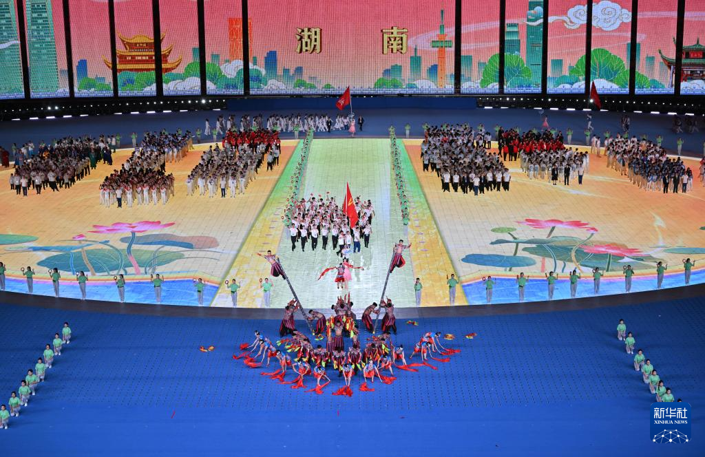 11月22日,湖南省代表團(tuán)在開(kāi)幕式上入場(chǎng)。