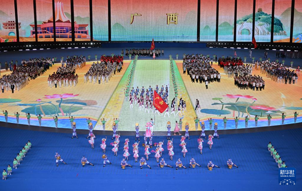 11月22日,廣西壯族自治區(qū)代表團(tuán)在開(kāi)幕式上入場(chǎng)。
