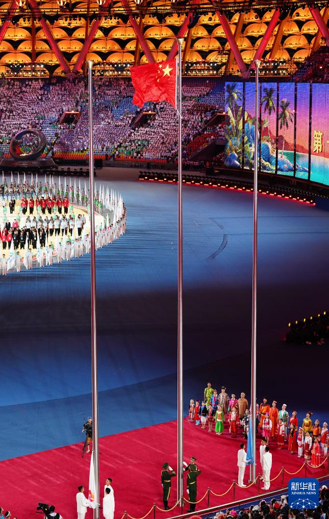 11月22日,中華人民共和國(guó)國(guó)旗在開(kāi)幕式上飄揚(yáng)。