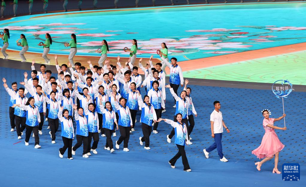 11月22日,四川省代表團(tuán)在開(kāi)幕式上入場(chǎng)。