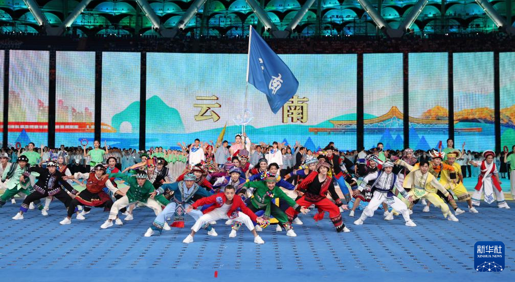 11月22日,中華人民共和國(guó)第十二屆少數(shù)民族傳統(tǒng)體育運(yùn)動(dòng)會(huì)會(huì)旗方陣在開(kāi)幕式上入場(chǎng)。