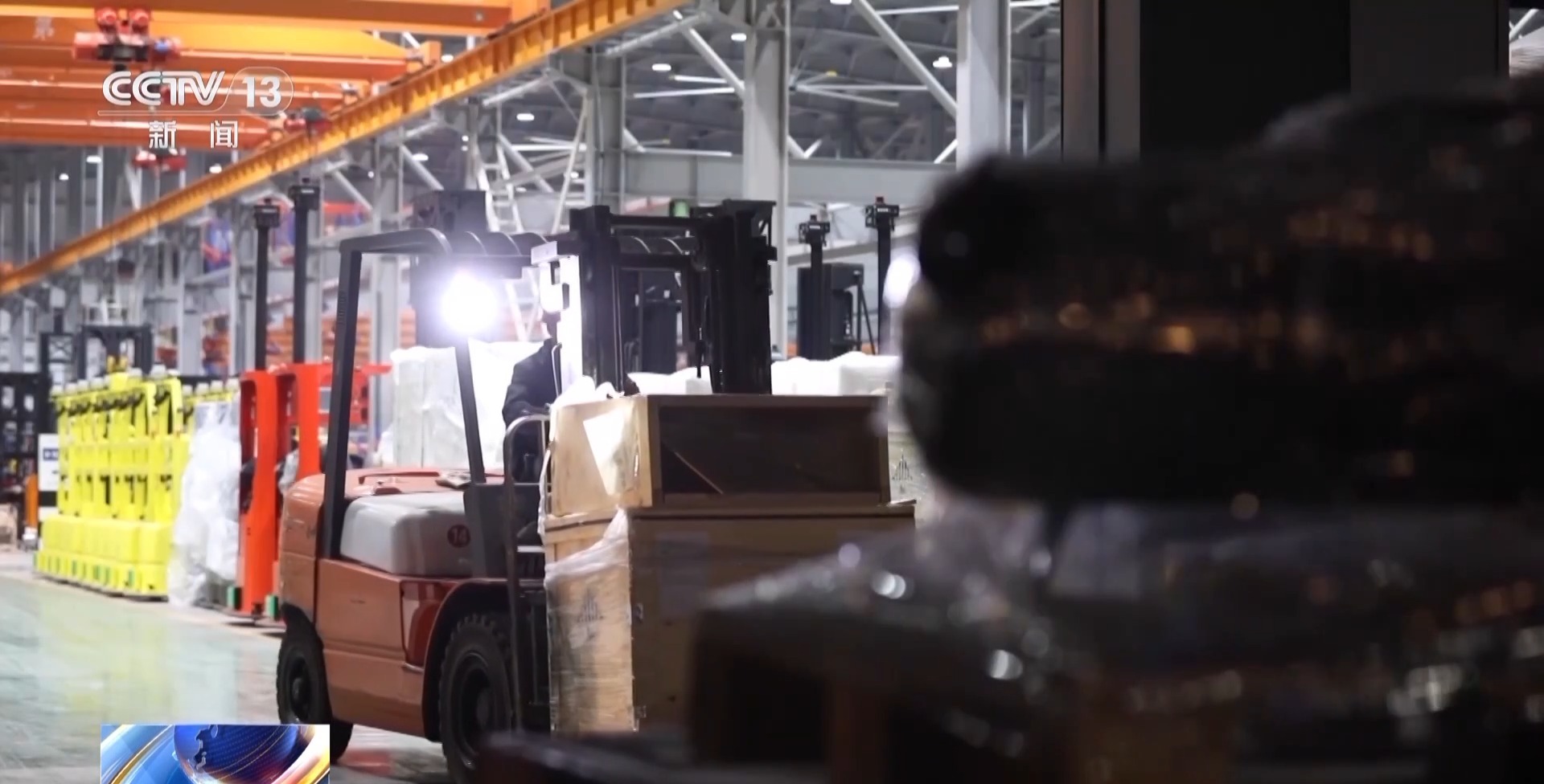 夜里兩點(diǎn),安徽合肥的這家叉車(chē)生產(chǎn)企業(yè),發(fā)貨區(qū)里依然熙來(lái)攘往,五輛卡車(chē)依次排隊(duì),上百?lài)嵷浳锏却霭l(fā)。