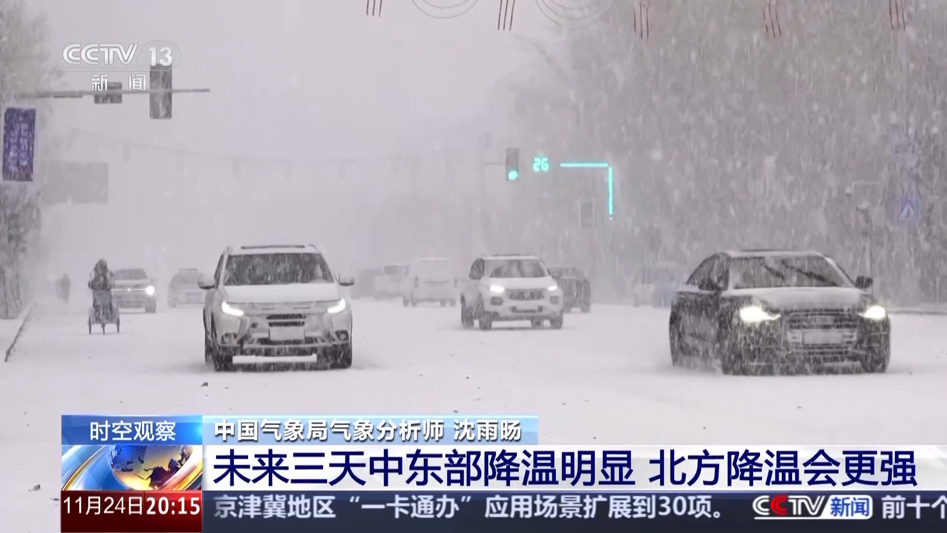 這次寒潮因?yàn)橛欣渑諝獾南嘤?,所以雨雪天氣也是比較廣泛。北方的不少地方會(huì)出現(xiàn)降雪或者是雨雪相態(tài)的轉(zhuǎn)換,尤其是在內(nèi)蒙古的東部、東北這一帶,25到26日要防范強(qiáng)降雪天氣,而且東北地區(qū)還是以濕雪為主,很容易出現(xiàn)道路結(jié)冰。提醒大家出門時(shí)多關(guān)注路況,注意安全。