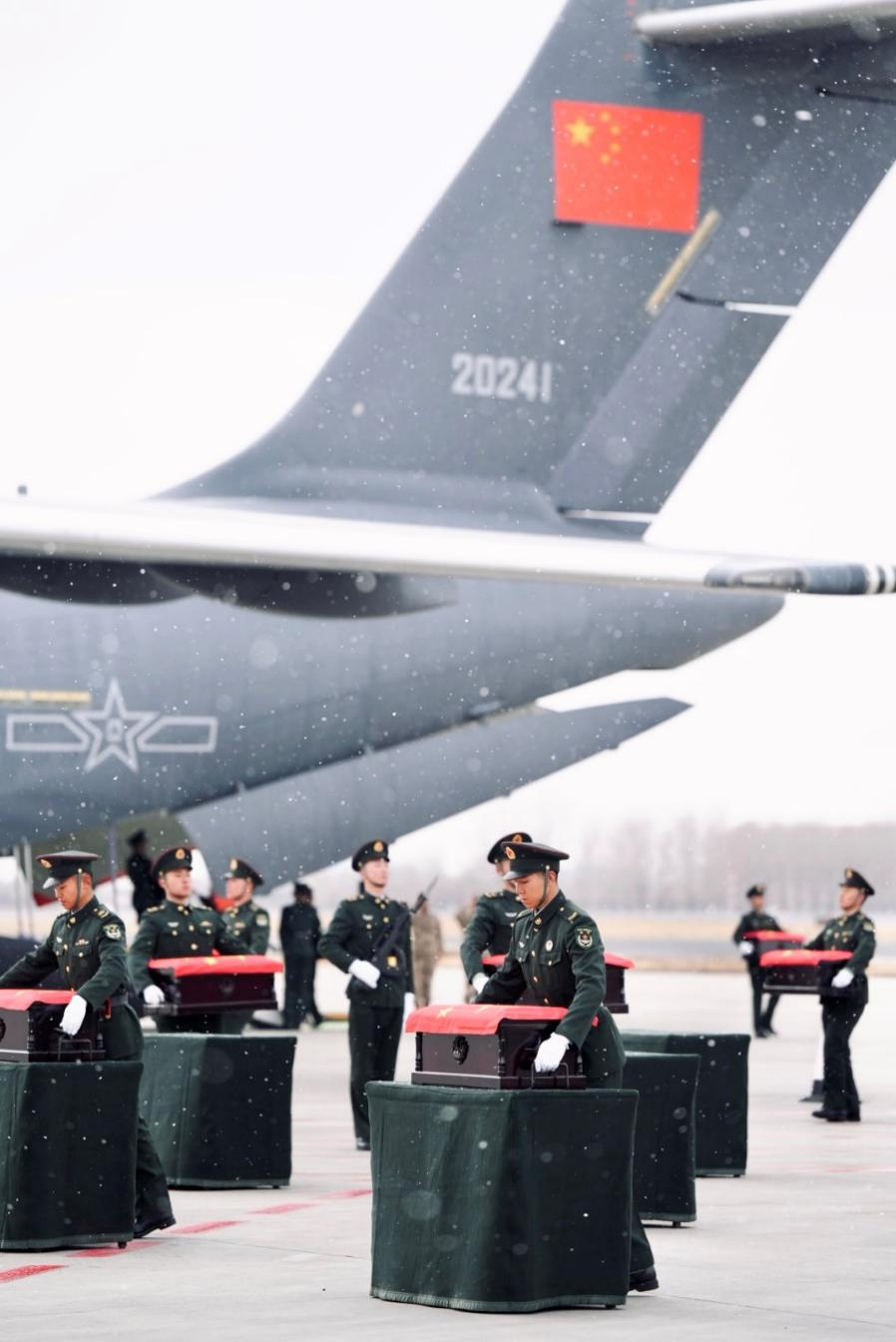 2020年,第七批在韓志愿軍烈士遺骸歸國(guó)時(shí),中國(guó)首次派大型國(guó)產(chǎn)運(yùn)輸機(jī)“運(yùn)-20”承擔(dān)迎回任務(wù)。