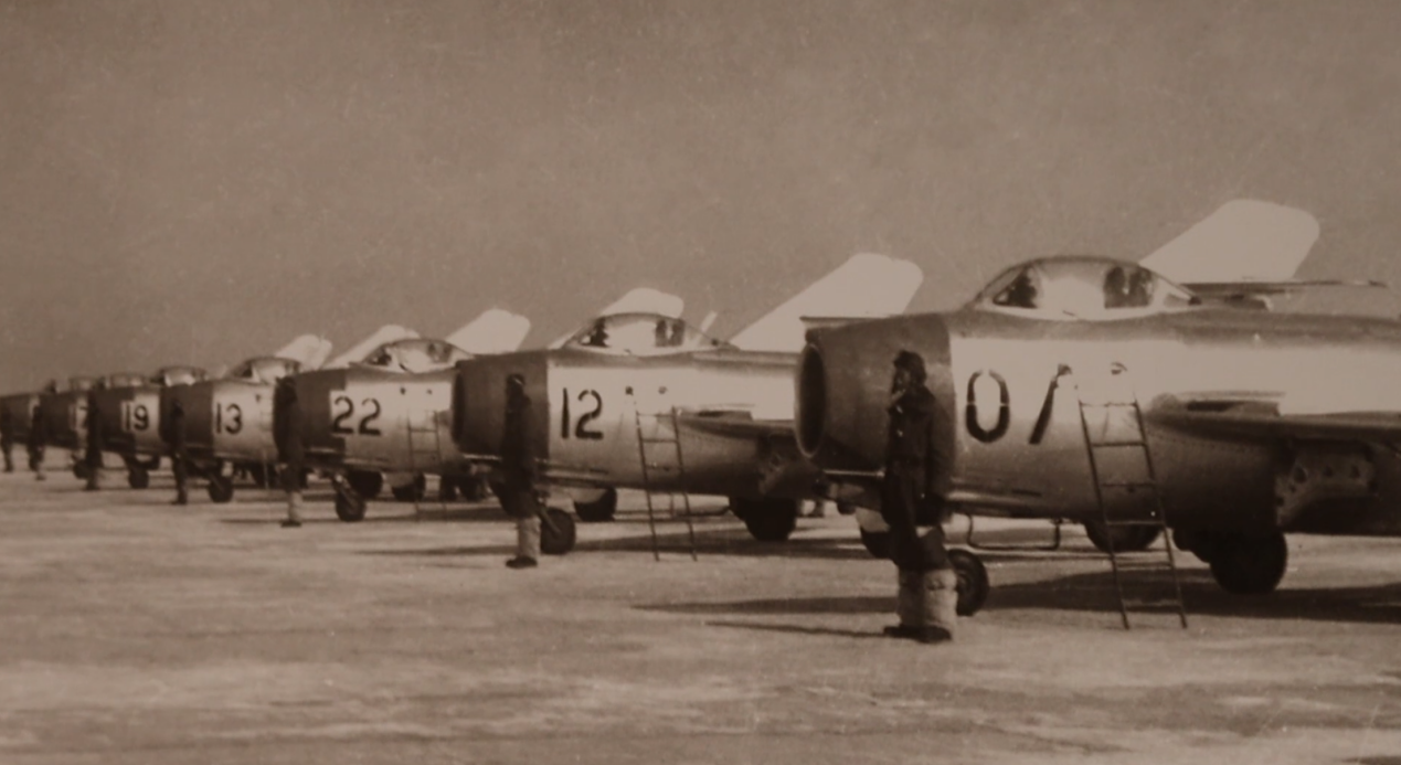 接到命令后,志愿軍空軍第四師第十團(tuán)二十八大隊(duì)大隊(duì)長(zhǎng)李漢率6架“米格-15”型殲擊機(jī)起飛迎擊。年輕的趙志才也在其中,他接替訓(xùn)練時(shí)發(fā)生意外而犧牲的朱學(xué)才,擔(dān)任大隊(duì)長(zhǎng)李漢的僚機(jī)。