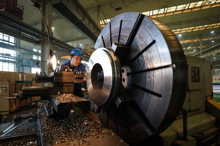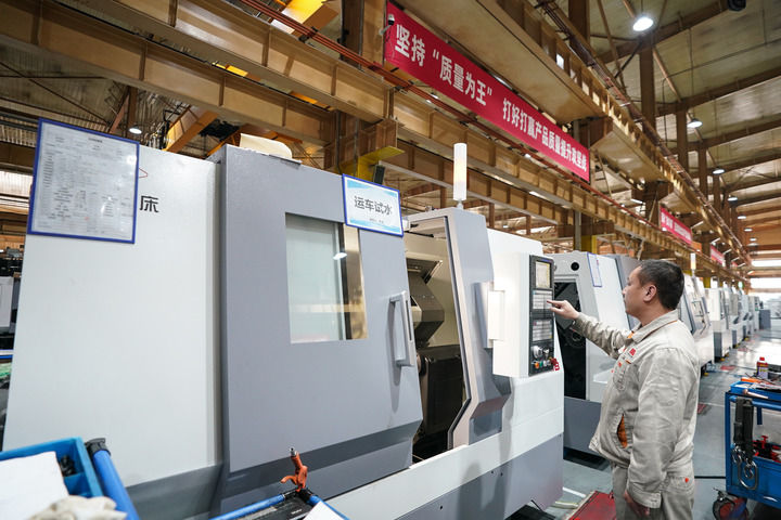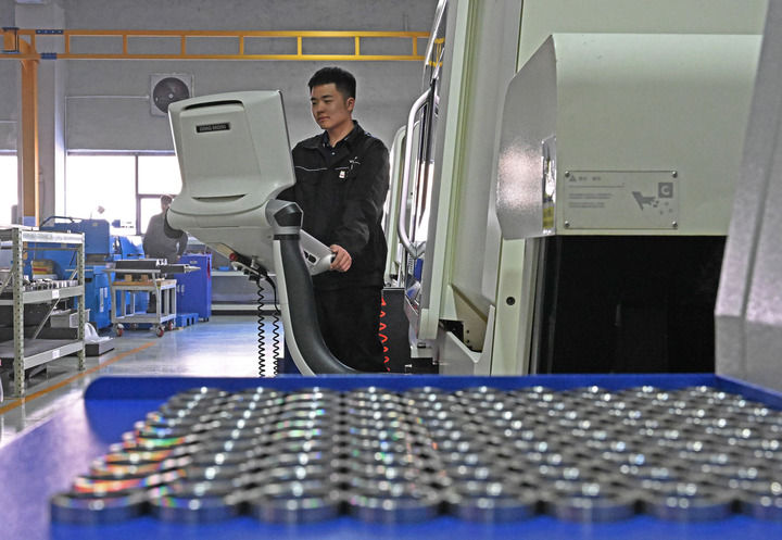 2024年3月21日,在沈陽(yáng)微控飛輪技術(shù)股份有限公司,工人在機(jī)加車間操控機(jī)床。新華社記者 楊青 攝
