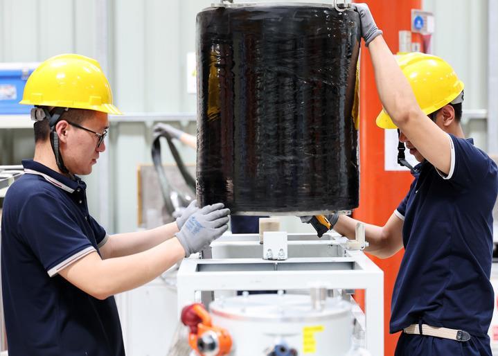 沈陽(yáng)微控飛輪技術(shù)股份有限公司的工人在進(jìn)行組裝工作(2024年6月13日拍攝)。 新華社記者 李鋼 攝