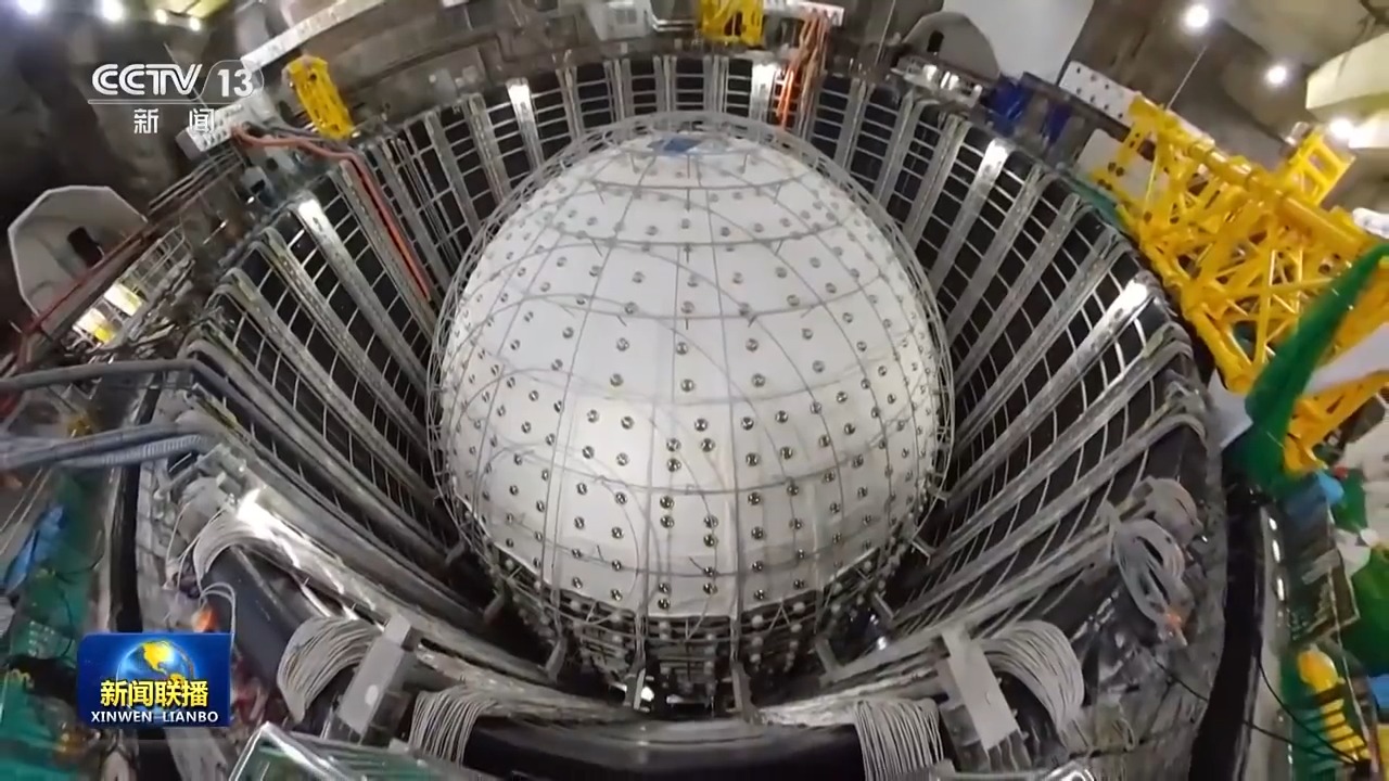 總臺(tái)央視記者 帥俊全:探測(cè)器主體建成之后,在這個(gè)約15層樓高的水池內(nèi)部將會(huì)注滿超純水,然后自上而下在有機(jī)玻璃球體內(nèi)部置換為液體閃爍體。從明年開始,整個(gè)裝置將正式運(yùn)行,開始捕獲、探測(cè)中微子,設(shè)計(jì)壽命為30年。