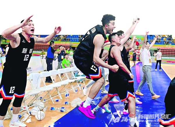 11月23日,第十二屆全國少數(shù)民族傳統(tǒng)體育運動會珍珠球比賽小組賽,新疆隊以40∶39戰(zhàn)勝浙江隊,取得小組賽開門紅。圖為新疆隊隊員歡呼雀躍。