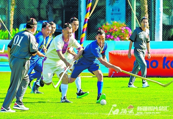 11月24日上午,男子珍珠球第二輪小組賽中山東隊與新疆隊比拼。比賽結束后,兩隊在場外同喊口號、互贈紀念品;26日,民族大聯(lián)歡文化活動上,全國各地代表團相聚“天涯海角”景區(qū),各族運動員在海邊延展出一條綿長的“民族風景線”;27日,新疆代表團在駐地酒店精心籌備了聯(lián)歡會,新疆、湖南、云南、黑龍江等地代表團歡聚一堂,共敘友情。