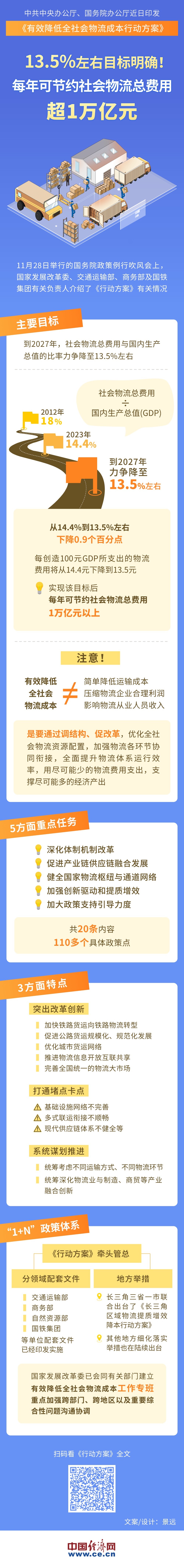 【圖解】13.5%左右目標明確!每年可節(jié)約社會物流總費用超1萬億元
