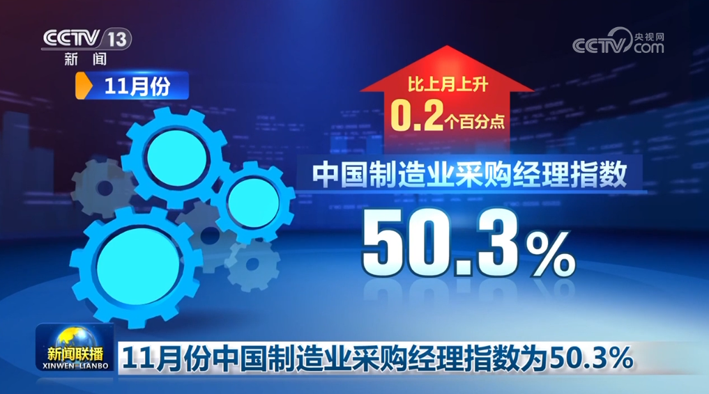 11月份中國制造業(yè)采購經(jīng)理指數(shù)為50.3%,比上月上升0.2個百分點(diǎn)。