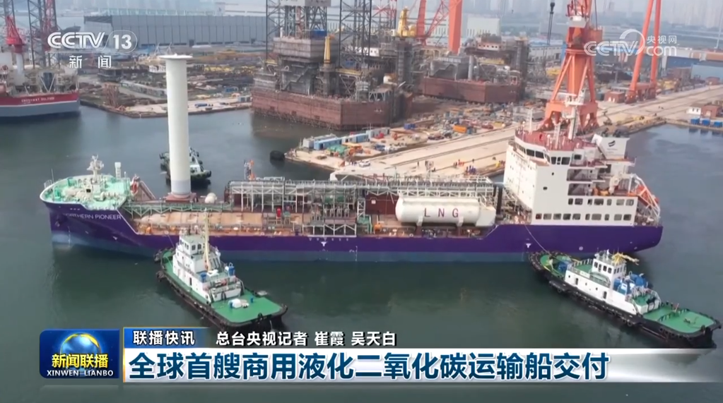 由中國船舶大連造船自主研發(fā)建造的全球首艘商用液化二氧化碳運(yùn)輸船,近日正式交付國外用戶。該船一次可運(yùn)輸7500立方米的液化二氧化碳。
