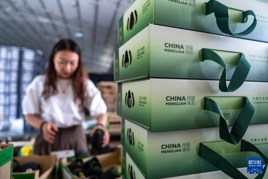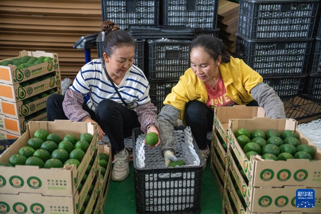 工人在中國(guó)孟連牛油果集配中心內(nèi)包裝分選后的牛油果(10月29日攝)。新華社記者 陳欣波 攝