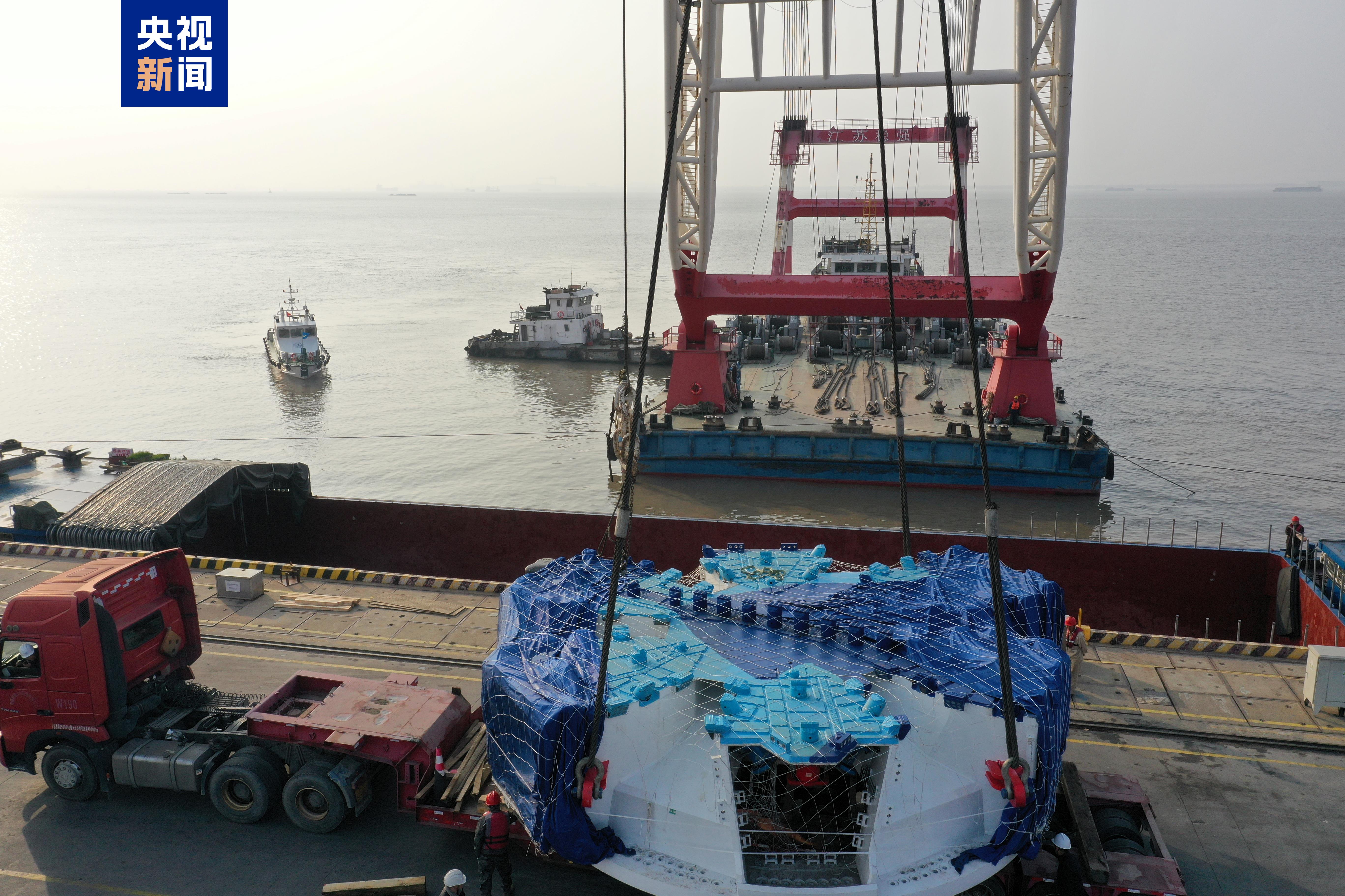 今天(12月3日)9時許,海太長江隧道盾構(gòu)機“江海號”的刀盤中心塊運抵江蘇南通海門吊裝上岸,通過水陸聯(lián)運的方式進入施工現(xiàn)場。