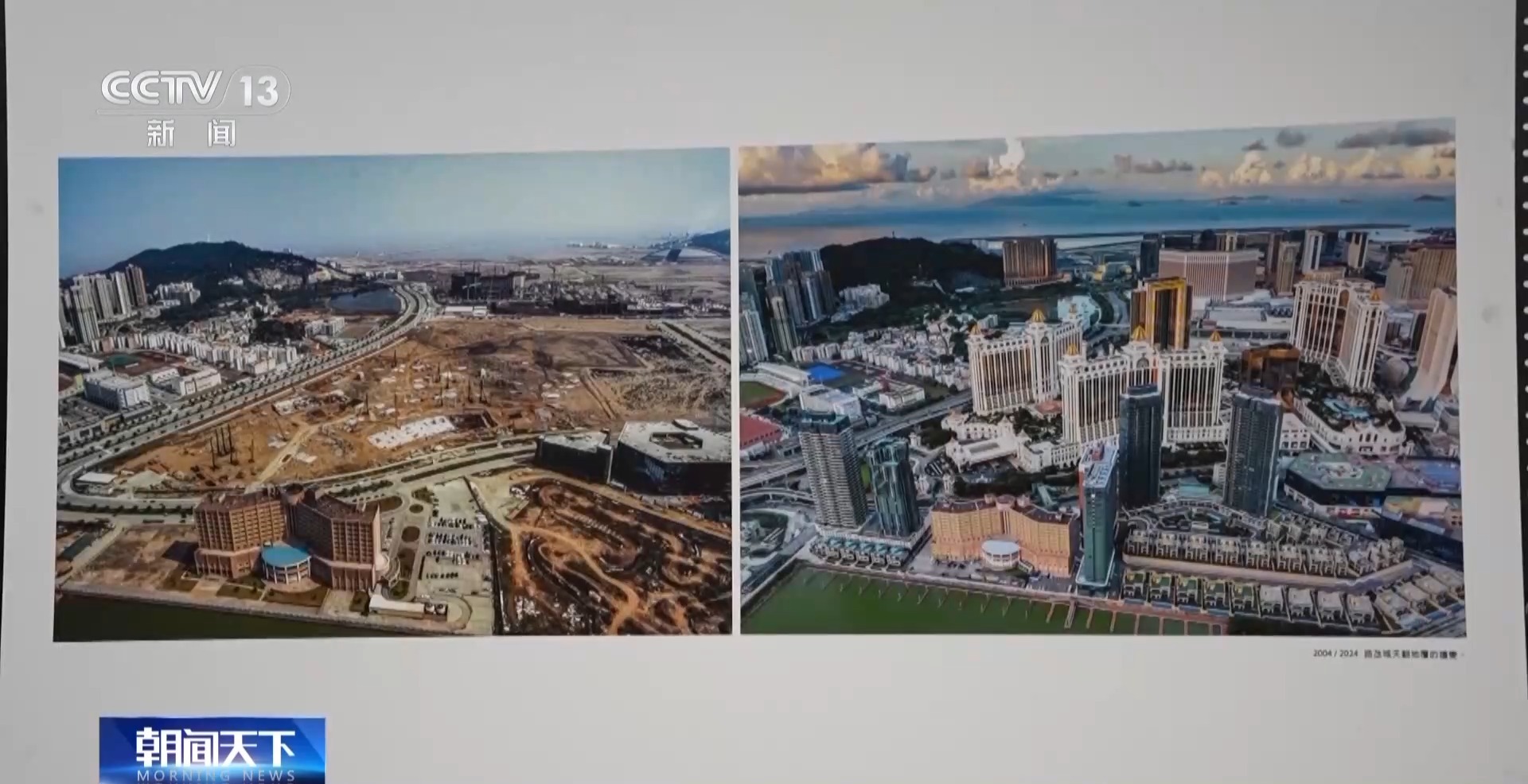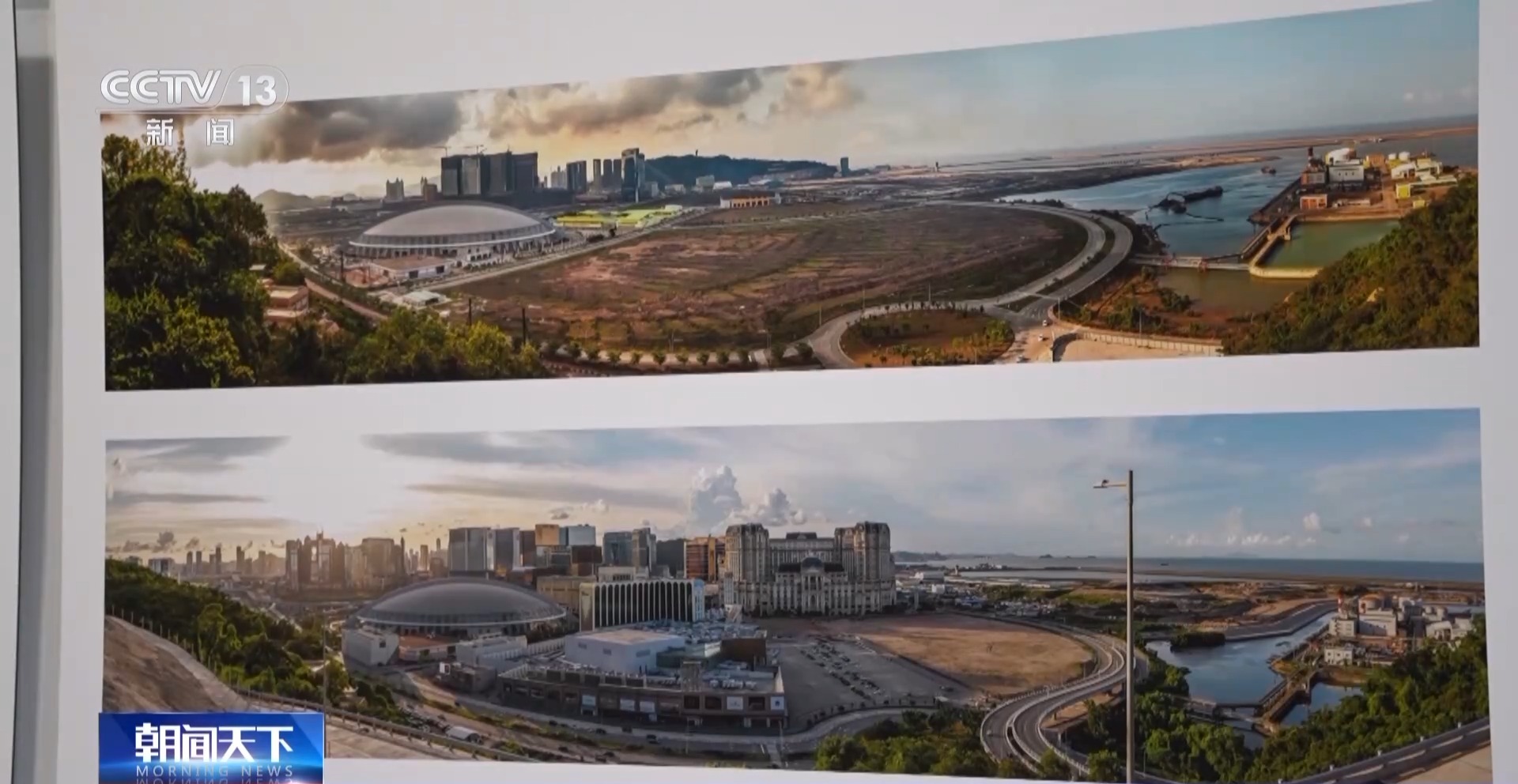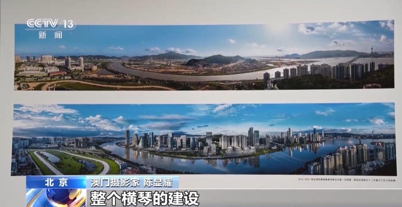澳門攝影家 陳顯耀:回歸之后,隨著我們澳門的發(fā)展,也是帶動(dòng)周邊區(qū)域一起發(fā)展繁榮。我們畫面看到的是橫琴,上面的照片是2012年的時(shí)候,橫琴都是山體,在準(zhǔn)備開發(fā)了。下面是成立的橫琴粵澳深度合作區(qū),整個(gè)橫琴的建設(shè)也為我們澳門的發(fā)展建設(shè)提供了一個(gè)很重要的支撐、保障。