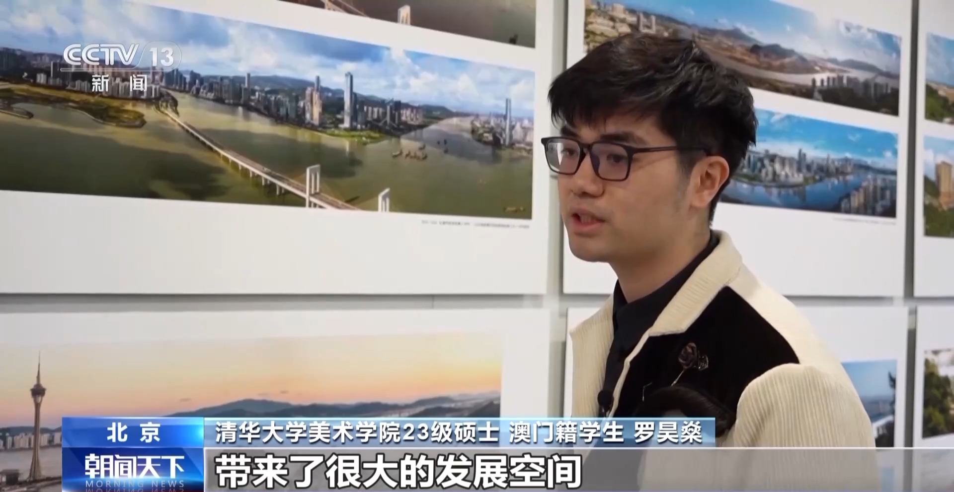 清華大學(xué)美術(shù)學(xué)院23級(jí)碩士 澳門籍學(xué)生 羅昊燊:我家就在老城區(qū)這塊,從小在這里長(zhǎng)大,這么多年還保留了澳門原來的文化色彩。主要是發(fā)展周邊的一些區(qū)域。我也看著周圍從荒蕪空地,發(fā)展成很多高樓大廈。它的建設(shè)為我們年輕人帶來了很大的發(fā)展空間。